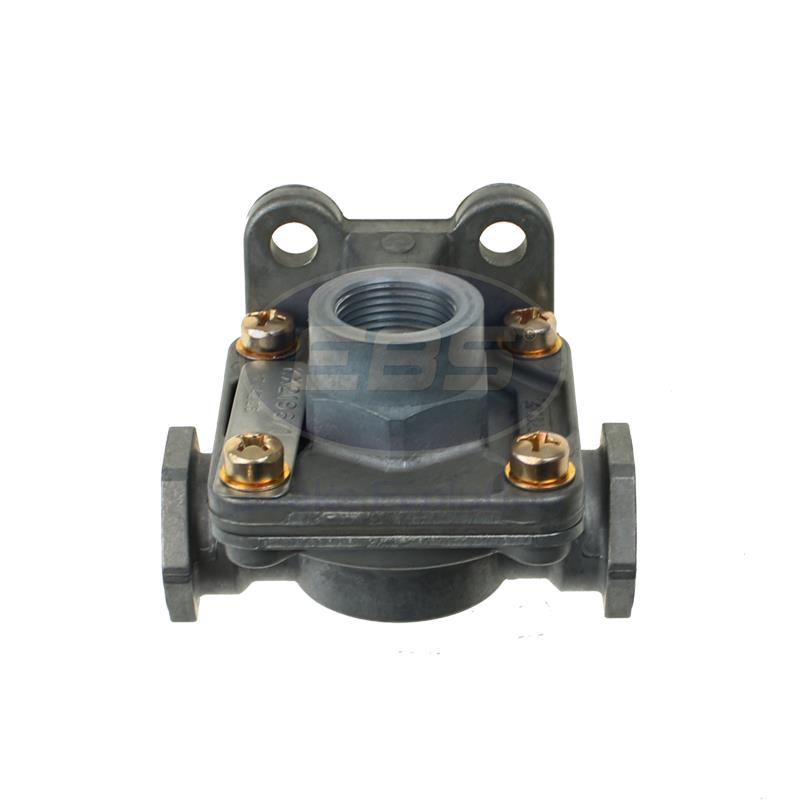 The function of a quick-release valve is to rapidly exhaust air from the controlled device. It is normally located adjacent to the controlled device, rather than requiring exhaust air to return and exhaust through the control valve. This decreases release time.